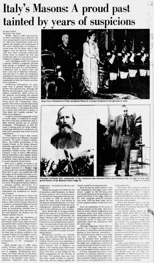 When on Friday, March 20th, 1981, a group of officers from the Guardia de Finanza served a thorough search warrant at the villa Vanda outside the small city of Arezzo, they weren’t looking for its owner – the head of P-2 Masonic Lodge Licio Gelli, or his friend Michele Sindona, closely connected with the mafia and accused of many financial scams both in Italy and the United States. The Finance Police didn’t discover either Sindona or Gelli. But they did find files and sealed envelopes with lists of members of the lodge, and sealed documents that set off the biggest political scandal in Italy’s postwar history.