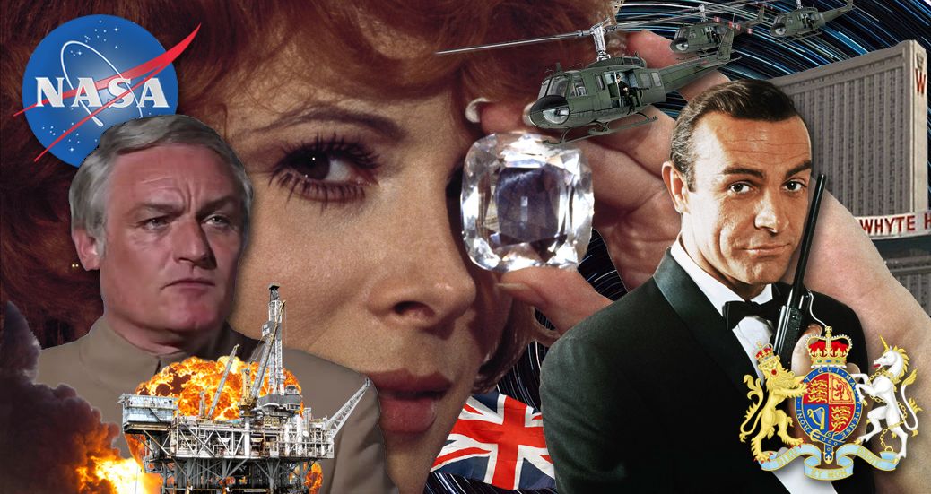 We’ve analyzed 007 in the past, as well as Howard Hughes in light of Scorcese’s The Aviator, but could there be a connection between the two? What if Ian Fleming was encoding an explosive, real-world conspiracy involving Howard Hughes, JFK, Aristotle Onassis and a legendary kidnapping? Not only is there evidence to suggest this, but the film version of his 1954 novel Diamonds Are Forever subtly suggests much more. We know Fleming was a high-level Royal Navy psychological warfare specialist and involved in numerous covert operations, and as I’ve argued many times, Fleming’s novels and the film versions, in their own respective ways, elucidate these clandestine activities, touching on everything from black-market smuggling networks to actual espionage and assassinations.